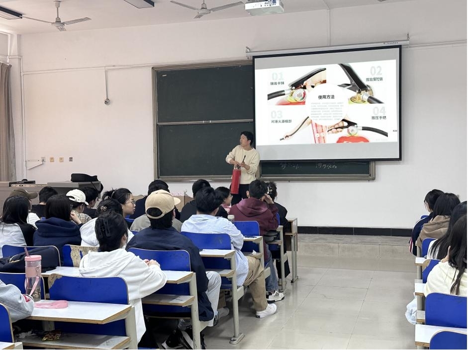 庞主任首先详细介绍了近期高校发生的安全事故的典型案例及惨痛教训,使学生感同身受,充分认识消防安全预防的重要性与必要性。随后,现场讲解如何规范使用灭火器,介绍了实验室消防器材的分布、消防栓的具体位置,安全用电的要点和常识,他反复强调,全体同学要强化“安全第一、防患未然”的意识。最后,介绍了实验室的管理要求及规范,强调保护环境从我做起,共同营造安全、整洁、优雅的实验室学习环境。