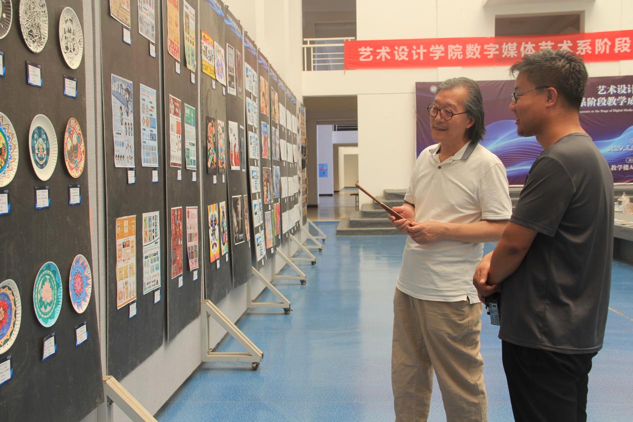 为进一步落实必赢网站评估推进会会议精神,展示应用型本科教学特点,按照“数智引领、文化驱动、承创融合、设计赋能”的学院特色,也为了进一步加强学科专业建设与探索,检视教学成果,提升教学质量,5月22日-5月24日,在教学楼AB区大厅举办了数字媒体艺术系阶段教学成果汇报展。Bwin·必赢院长吴昊,执行院长时晓楠,副院长任晓丽,数字媒体艺术系主任蒲鹏举,实验室主任庞理科及相关教师参加了此次成果汇报展。