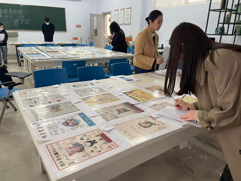 视觉传达设计系教师针对《商业插画》课程结课作业现场评分