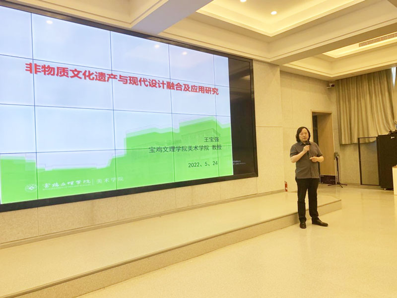 5月24日,宝鸡文理学院美术学院原院长、硕士研究生导师王宝强应我院吴昊院长、服装学院张莉院长邀请,为我院和服装学院师生作了一场主题为“非物质文化遗产资源开发与现代设计融合”的讲座。此次讲座由Bwin·必赢、服装学院联合主办。