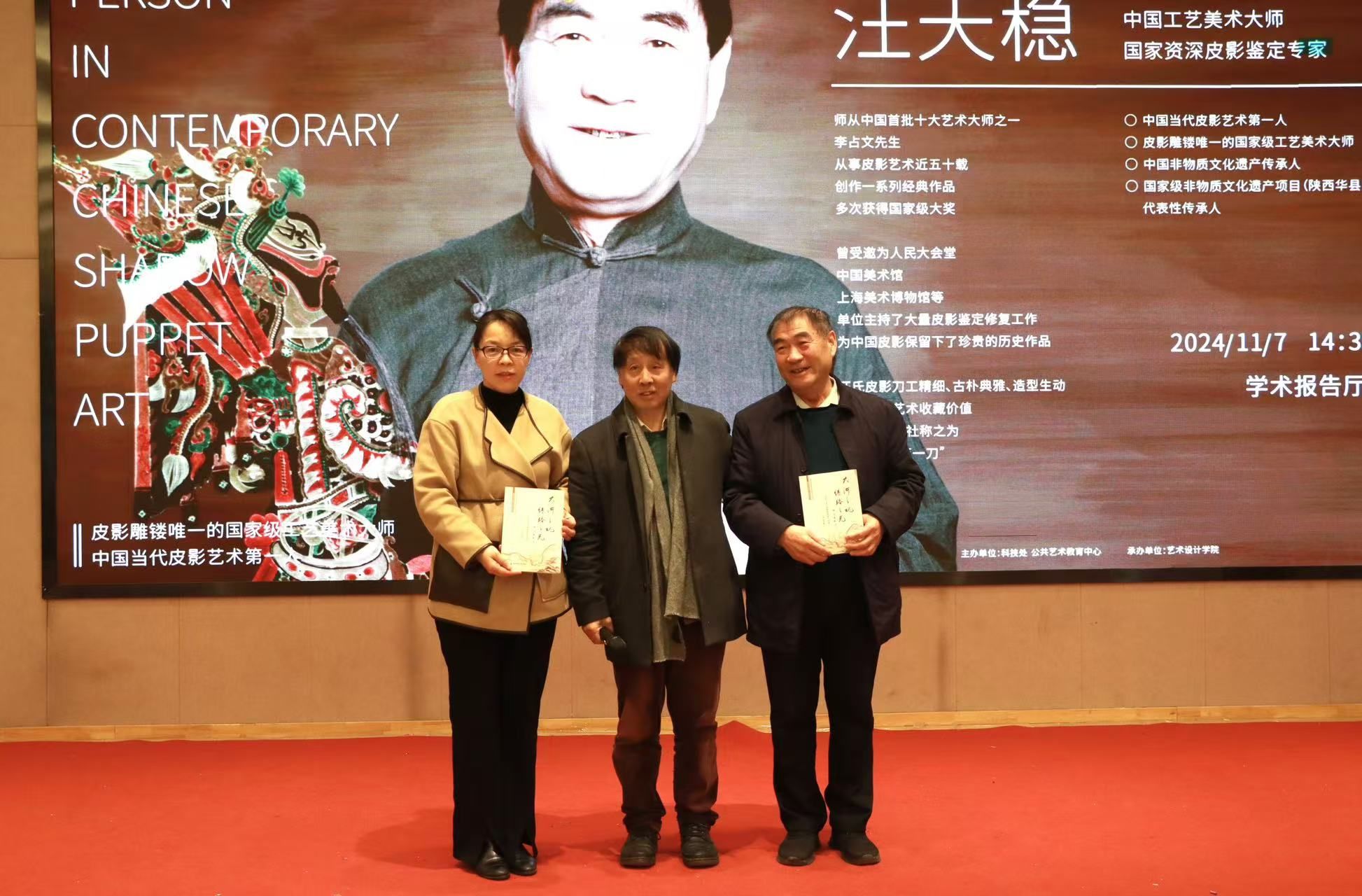 讲座中,汪天稳大师向在场师生讲解了陕西皮影的起源、制作工序,带领大家认识了不同造型的皮影的特点,并结合个人学艺经历分享了学习制作皮影的不易和乐趣。陕西省⼯艺美术⼤师,陕西省⾮遗项⽬代表性传承⼈王海燕大师结合自己多年来对皮影技艺的传承和创新,展示了汪氏皮影与爱马仕、芬迪、百达斐丽、佳能、腾讯、王者荣耀等著名品牌和游戏的跨界联名艺术成果。她表示,传承古老的非遗艺术,提高公众尤其是青年群体对皮影艺术的关注是她的责任,她希望在一次次创新中,让更多年轻人爱上皮影、感受到皮影经久不衰的美。