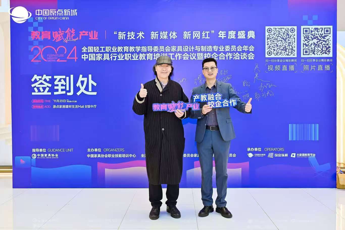 本次盛典不仅为行业内的专业人士提供了一个交流的平台,也为推动中国家具行业的职业教育与技能培训注入了新的活力。作为高校教师代表,我们与各方优秀与会者合影留念,进一步加强了校企合作的联系,促进了教育与行业的深度融合,为未来的教学和学生的职业发展提供了更多的机会和资源。