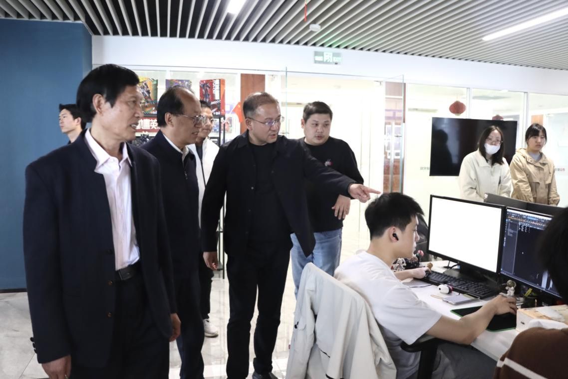 座谈会后,校领导在公司负责人的陪同下参观了实习基地和工作区域,详细了解了公司在数字内容创作、微短剧创作、影视制作、新媒体运营等方面的业务布局,检查了我校学生的实践成果。