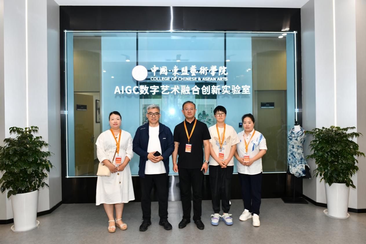 时晓楠院长一行参观了成都大学AIGC数字艺术融合创新实验室,并与相关负责人就专业数字化转型发展、课程体系构建、AIGC智能化教学等有关问题进行了深入交流。