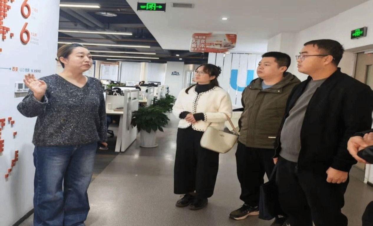 在西安微聚繁星电子商务有限公司进行参观交流时,公司负责人引导参观了企业办公环境、直播基地等核心区域,并分享了公司在电商运营、直播带货、数字营销等领域的前沿实践和成功案例。座谈会上,双方就电子商务行业对复合型、创新型人才的迫切需求交换了意见,并就如何结合学院专业优势与企业实际岗位需求,协同培育符合行业发展的高素质人才进行了卓有成效的探讨。
