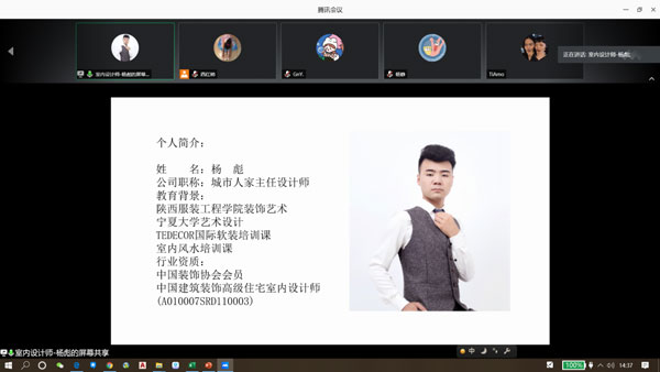 校企合作单位北京城市人家装饰集团咸阳分公司、东易日盛家居装饰集团西安分公司分别安排资深设计师杨彪(校友)、优秀设计师康文博通过案例分析、线上参观、职业规划等内容与学生进行了分享与交流,取得良好效果。