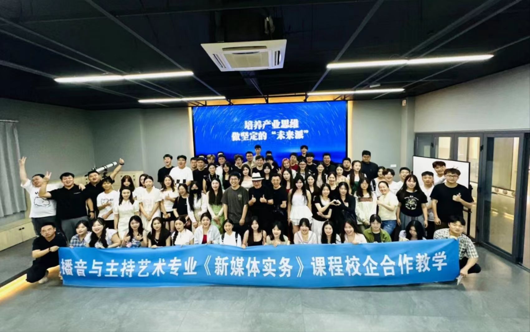 为进一步深化教育教学改革,全面推进产教深度融合,贯彻落实“校企协同育人”发展模式,6月17日,我院播音与主持艺术专业21级同学前往江苏省常熟市数动智能科技有限公司,就《新媒体实务》课程开展为期一周的校企合作教学。