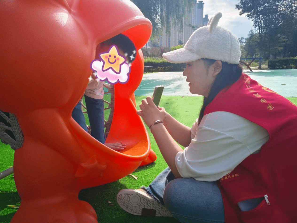 抵达广场后,志愿者们按照预先分工,迅速开展各项娱乐活动。对于年龄较小的孩子,志愿者们耐心讲话,用温柔的语气和他们聊喜欢的动画;对于肢体协调性较弱的孩子,志愿者们放慢脚步,耐心辅助他们完成动作;当遇上不想说话的孩子们时,志愿者们就默默陪伴。