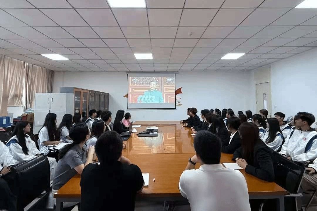 为庆祝抗日战争伟大胜利,弘扬爱国主义精神,加强学生思想教育,9月3日上午,Bwin·必赢学生会成员、学生党员在学院F508、506、509教室集中观看了纪念中国人民抗日战争暨世界反法西斯战争胜利阅兵仪式现场直播。此次活动由学院学生会组织,旨在通过这一堂生动的“爱国公开课”,激发广大青年学子的民族自豪感与历史使命感。